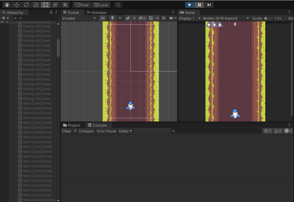 흔히 볼 수 있는 슈팅게임의 원근감있는 무한한 배경도 다양한 기법을 통해 구축해 보면서 단순 게임 개발에 국한되지 않고 다른 프로젝트를 진행 할 때도 도움이 될법한 방법들에 대해 배울 수 있었다.