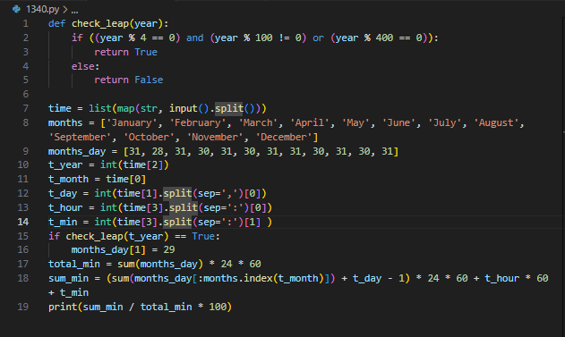 - 해당 연도의 시작부터 오늘 날짜까지 지난 퍼센트를 구하는 문제!