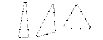 예를 들어서 9개의 성냥개비로 만들 수 있는 서로 다른 삼각형은 그림 1과 같이 3가지이다.