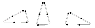 - 합동인 삼각형들은 같은 삼각형으로 본다. 예를 들어서 성냥개비 5개를 사용하여 만들수 있는 그림 2의 삼각형들은 같은 삼각형으로 본다.
